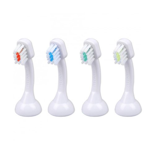 Emmi-dent Ultrasonic Brush Heads. The Emmi-dent Brush Head contains a specially patented ultrasonic microchip. It is recommended that you replace your Emmi-dent ultrasonic toothbrush head every three months. A worn Emmi-dent brush head transmits less ultrasound through its bristles and therefore does a less effective cleaning job. The brush heads for kids are in smaller size that is designed to gently and effectively clean small teeth and fight plaque and cavities. Ideal for kids who hate brushing their teeth. Just hold the unit close to the teeth and they get clean! (Sold separately in a package of 4 or 10). Dimensions: Adult Size - 3.5"L x 0.5"W x 0.5"H Kid Size - 2.375"L x 0.5"W x 0.5"HRead more Emmi-dent Ultrasonic Brush Heads