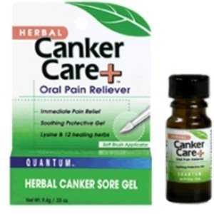 Canker Care+ - The Natural Canker Sore Remedy that Goes to Work Right Away -Eliminates canker sore pain -Speeds canker sore healing -Forms protective gel over canker sore -Soft brush for painless application -14 healing and soothing nutrients About Canker Sores Canker sores are shallow, painful sores on the inside of the lips, the inside of the cheeks, or on the gums. They begin as small, reddish swellings. Then they burst, and the ruptured sores are covered with a white or yellow membrane. The edges of the sores are still red, and look like a painful red halo. Without a canker sore remedy, canker sores (medically: aphthous ulcers) heal in 2 to 3 weeks.Read more QUANTUM Canker Care+ Gel 0.33 OZ